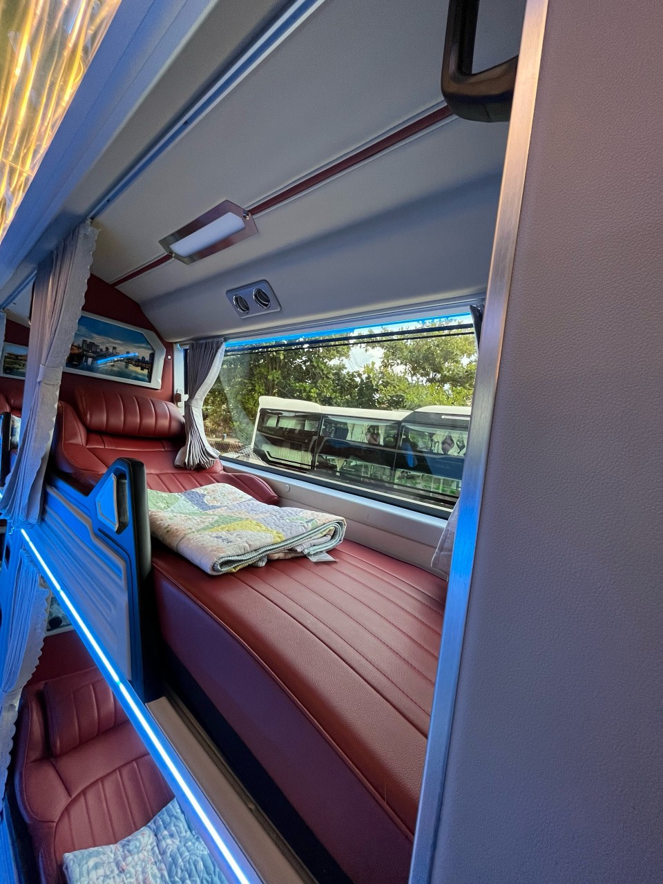 Hành trình từ Hà Nội đến Hội An kéo dài khoảng 14-16 giờ, tùy thuộc vào tình hình giao thông. Với các chuyến xe được khởi hành đều đặn trong ngày, bạn có thể dễ dàng chọn lựa thời gian khởi hành phù hợp với lịch trình của mình. Chúng tôi cung cấp nhiều lựa chọn giờ khởi hành, từ sáng sớm đến tối muộn, đảm bảo sự linh hoạt cho khách hàn Đặt vé xe Bus Hà Nội đi Hội An Chúng tôi đặc biệt chú trọng đến sự thoải mái của hành khách với các tiện nghi cao cấp trên xe: Ghế ngả thoải mái: Ghế ngồi được thiết kế êm ái, có thể ngả đến 160 độ, giúp bạn dễ dàng nghỉ ngơi trong suốt chuyến đi Điều hòa không khí: Hệ thống điều hòa hiện đại, đảm bảo không gian trên xe luôn thoáng mát, dễ chịu. Wi-Fi miễn phí: Kết nối internet suốt hành trình, giúp bạn không bỏ lỡ bất kỳ thông tin nào hoặc giải trí theo sở thích.